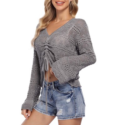 Clearlove Womens Sweater Cardigan Cropped Lightweight Rib Texture Button Down Knit Tops 2025 Fall Casual Outfits, grey - M