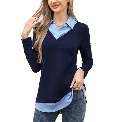 【FLATTERING V-NECKLINE FOR A FEMININE TOUCH】Featuring a classic V-neckline, this top elegantly frames the collarbone and elongates the neck. The neckline adds a subtle hint of femininity and pairs well with a variety of accessories, perfect for dressing up or down.