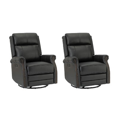 Set of 2 Clemens Genuine Leather Swivel Rocking Manual Recliner with Decorative Curved Mood Arm| ART OF LIVING DESIGNS-BEIGE