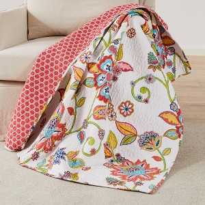 - COORDINATE YOUR ROOM DECOR: Create a wonderful space with this quilted throw. The orange, yellow, teal and ivory design brings beautiful autumnal floral elements accents into your home and will match a variety of different looks. You can also freshen your room with other items from the Clementine Spring collection.