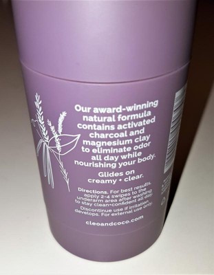 [This review was collected as part of a promotion.] I was excited to try Cleo+Coco Charcoal Deodorant because I am trying to use more natural products. This one has received recognition for being clean and green so I really like that. The scent I received was Sweet Surrender, Lavender Vanilla. Wow is thing thing heavily fragranced. The lavender fragrance is ridiculously strong and I barely put any on. I can smell it all day. Seriously it started to give me a headache after a few hours. Plus if you wear perfume, it will be competing with the scent of this deodorant. I was concerned about the color of this deodorant. The charcoal content makes the product speckled gray in color. It goes on clear though. So that's good. Another problem is that it doesn't do squat for sweat. Living in Florida, I need something that helps control sweat. This does not at all. This product is not for me.