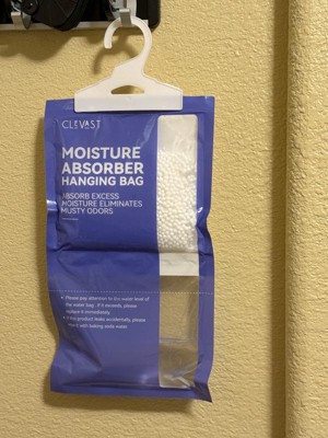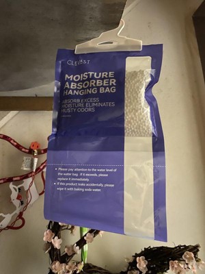 My family and I live in a very humid state and our house tends to get very humid. I am always looking for ways to dehumidify our home. I've tried various dehumidifiers but it takes counter space, bulky, and always have to be plugged in. I wanted something portable and easy to use. I found these by Clevast moisture absorbers pack of 10 which is super nice when done with one place a new one on. Super easy to set up, take it out of the bag and hang it in the closet. Then watch the pebbles turn into water. Once it gets to the maximum line, toss it into trash and place a new one. Efficient, no crazy odors and works well. I've had mine over a week and it still hasn't reached the maximum line but getting there. I strategically placed it in areas where I knew high humidity. They work well and I honestly would purchase more once I ran out of these. I do wish that there's was a reusable option available where I just empty the water and hang back up.