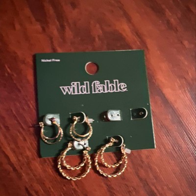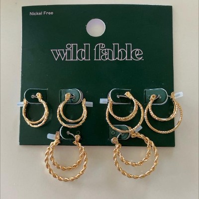 Click Top Faux Duo Hoop Earring Set 3pc from Wild Fable™ includes three pairs with one-inch drop length and different designs featuring either two-circle or three-circle frame for added movement. Nickel-free metal for comfort with most skin types, and click-top closures lend secure wear on pierced ears.
