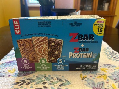 - THE ULTIMATE FLAVOR ADVENTURE: One 15-count variety pack of Zbar Soft-Baked Energy Snack Bars + Zbar Protein Snack Bars with five bars each of three yummy flavors: Chocolate Chip, Iced Oatmeal Cookie, and Cookies 'N Creme