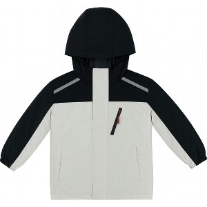 The CLIFFS boys' lightweight rain jacket is the ultimate all-weather layer for active kids. Built with a durable polyester shell and a 600wp (waterproof) coating, it provides reliable defense against rain while remaining light enough for comfortable, all-day wear. The full-front zipper is protected by a storm flap with Velcro closure, creating a double-sealed barrier against wind and moisture. Beyond its protective outer layer, this jacket is packed with features to keep up with any adventure. Three pockets—two with snap button closures and one zippered chest pocket—offer plenty of secure space for small essentials like keys, a wallet, or found treasures. Crafted with elastic cuffs providing a snug fit at the wrists to keep water and wind from getting in, without being too tight. The attached hood offers additional coverage for the head and neck, protecting against unexpected downpours. Reflective stripes on the back and shoulders provide 360-degree visibility, helping kids stay safe in low-light conditions. These jackets are durable, versatile, and easy to care for with practical designs that ensure a long life of use through multiple seasons and adventures. The fabric is machine washable, simplifying laundry for busy parents. Just machine wash in cold water and line dry in the shade to maintain its waterproof coating. The durable polyester material is tough enough to handle daily wear and tear, whether on the playground or a camping trip. Available in boys’ sizes 8 (Small), 10/12 (Medium), 14/16 (Large), 18/20 (X-Large) and colors like Brown and Black, making it easy to find the perfect fit and style for any child