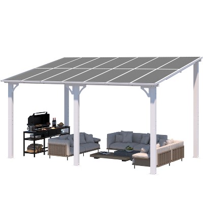 CLIHOME 14 ft. x 12 ft. Outdoor Lean to Gazebo Hardtop Wall Mounted Pergola with Polycarbonate Patio Cover for Patio Lawn, Grey