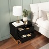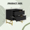 Add modern elegance and smart storage to your bedroom with this 2-Drawer Nightstand. Featuring geometric surface detailing and shiny gold handles, it brings a fashionable touch to any space. Two spacious drawers keep your essentials organized, while the rounded edges and reinforced metal legs offer both safety and stability. Available in four stylish colors.