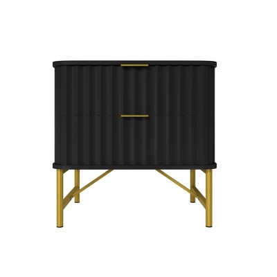 CLIHOME 2 Dovetail Drawers Classic Transitional Solid Wood Nightstand with Handle, Black