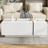 This minimalist coffee table blends bold color-blocking with smart functionality. Its wide tabletop offers ample space for decor or essentials, while dual pull-out compartments and two large drawers ensure organized storage. Crafted from premium MDF for lasting durability, its sleek design and reflective surfaces elevate modern interiors. A perfect fusion of elegance and efficiency, it seamlessly fits contemporary, minimalist, or artistic spaces.