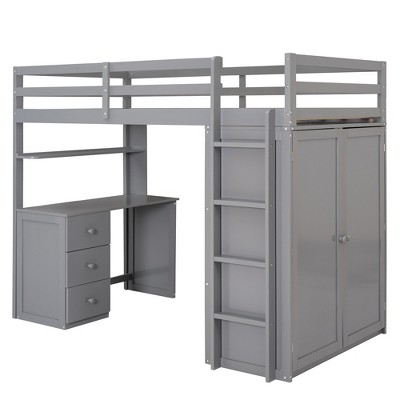 CLIHOME Full Size Loft Bed Frame with Stairs, Bookshelf, Drawers, Desk & Wardrobe, Space-Saving Multifunctional Furniture for Kids & Teens