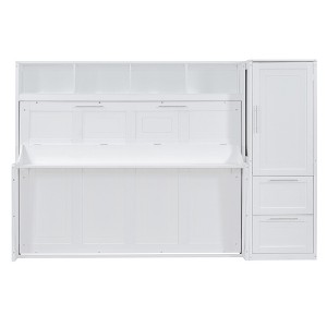 CLIHOME Full Size Murphy Bed MDF Wall Bed with Closet and 2 Drawers