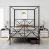 CLIHOME Metal Canopy Bed Frame, Platform Bed Frame with X Shaped Frame in Black