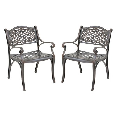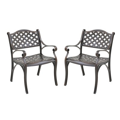 CLIHOME Outdoor Patio Woven Diagonal Grid Cast Aluminum Dining ChairSet of 2
