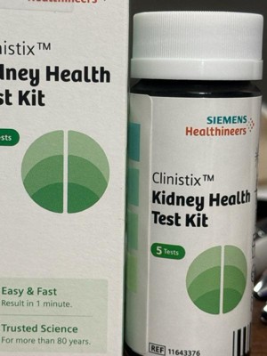 Introducing the Clinistix™ Kidney Health Test Kit by Siemens Healthineers—your trusted partner in proactively monitoring kidney health from the comfort of your own home. Detecting kidney abnormalities has never been easier, thanks to this fast, accurate, and reliable urinalysis kit. With a legacy of over 80 years in urinalysis, Siemens Healthineers presents the Clinistix portfolio of at-home tests, which use the same proven dry reagent chemistry found in professional medical settings. Our self-guided test strips detect albumin and creatinine levels in your urine, allowing you to assess your albumin-to-creatinine ratio, a critical indicator of kidney health. By identifying excessive proteins in your urine, you can take prompt action to safeguard your kidneys and reduce the risk of renal and cardiovascular issues. This FDA 510(k)-cleared kit provides semiquantitative results available in just 1 minute. Say goodbye to guesswork and hello to confidence in your kidney health with the Clinistix Kidney Health Test Kit—because early detection is the first step toward a healthier future.
