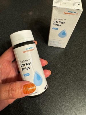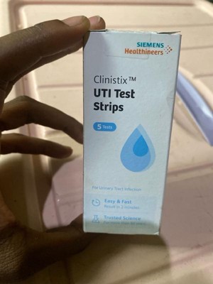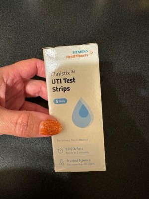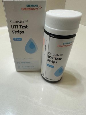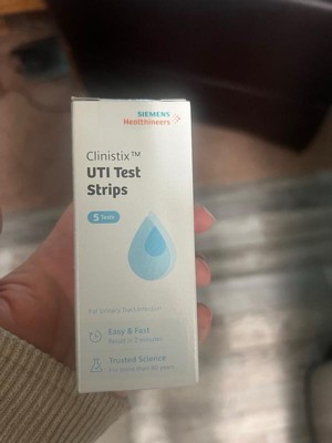 Introducing Clinistix™ UTI Test Strips by Siemens Healthineers—a fast, accurate, and reliable method for detecting urinary tract infections (UTIs) from the comfort of your home. With a legacy of over 80 years of urinalysis leadership, Siemens Healthineers brings professional-grade accuracy right to your fingertips. Clinistix UTI Test Strips employ the same dry reagent chemistry as the trusted Multistix® Reagent Strips used by healthcare professionals, ensuring reliable results. Designed for ease of use, these self-guided test strips detect nitrite and leukocytes (white blood cells) in your urine sample, a combination that offers superior insights into UTI presence compared to nitrite testing alone. Within just 2 minutes, you'll have clear, visually interpreted results, and with five strips in a bottle, you can have Clinistix tests at the ready when you need them. Whether you collect your urine mid-stream or by dipping the strip in a sample cup, these FDA 510(k)-cleared strips are your go-to solution for UTI screening. Get trusted results with Clinistix UTI Test Strips, your at-home partner in urinary health.