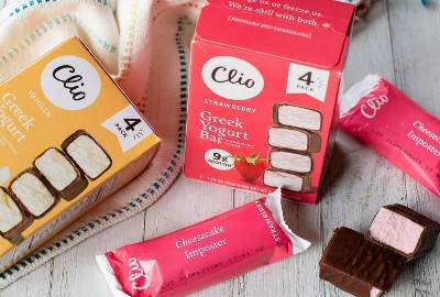 No spoon? No problem. Clio Greek Yogurt Bars are redefining yogurt and shaking up snacking with the first ever refrigerated yogurt bars you can eat with your hands, now made mini! Clio Mini Greek Yogurt Bars have a creamy, craveable cheesecake-like texture and irresistible, chocolatey coating. With only 70 calories per bar, they are a perfectly portioned, bite-sized treat with 4g of protein and billions of probiotics. Clio Mini Greek Yogurt Bars are the poppable pick-me-up snack the whole family will enjoy, anytime of the day.