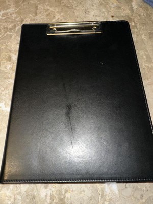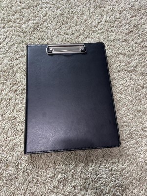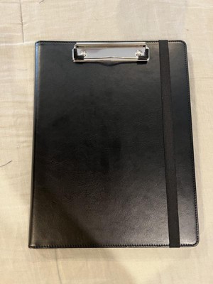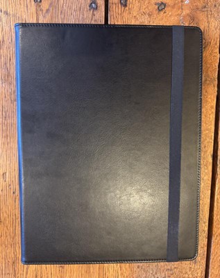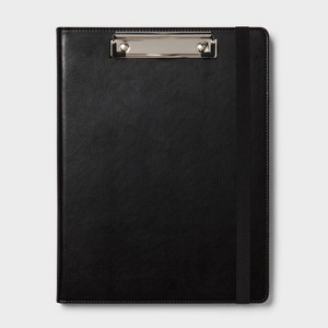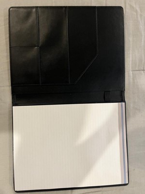 Keep everything you need for office meetings on hand with this Clipboard Folio from Threshold™. Featuring a faux-leather cover, this office folio in black has a clip on the front to hold papers for writing. The rectangular folio comes with an elastic pen holder and also has an elastic band to hold 160 college-ruled lined paper sheets. Boasting a glue binding, this rectangular folio is designed with multiple inner sleeves to store your important documents, business cards, IDs and more.