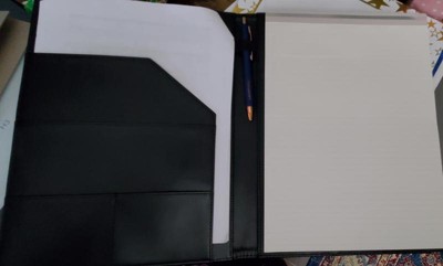 This folio has so much potential. I am on two board and it’s so handy to take notes and keep my documents organized — especially when I’m on the go. I love the professional look and I will definitely take it to any interviews in the future. The note book included is a large capacity and will last a long time.