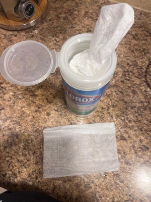 (2) On non food contact surfaces, when used as directed. USAGE DIRECTIONS: TO OPEN: 1. Pull out wipe from center of roll. 2. Next sheet pops up automatically. 3. Close lid to retain moisture. To clean and remove allergens (3): Wipe surface clean with this product. Let air dry. To disinfect and deodorize hard, nonporous surfaces: For visibly soiled surfaces, clean first. Wipe surface; use enough wipes for treated surface to remain visibly wet for 4 minutes. Let surface dry. DO NOT FLUSH. (3) Pet dander, dust mite matter, pollen particles, grass. CAUTION STATEMENTS: KEEP OUT OF REACH OF CHILDREN. PRECAUTIONARY STATEMENTS: HAZARDS TO HUAMNS AND DOMESTIC ANIMALS. CAUTION: Causes moderate eye irritation. Avoid contact with eyes or clothing. Wash thoroughly with soap and water after handling. FIRST AID: IF IN EYES: Hold eye open and rinse slowly and gently with water for 15 to 20 minutes. Remove contact lenses, if present, after the first 5 minutes, then continue rinsing eye. Call a poison control center for treatment advice.