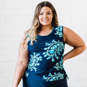 Calypsa Women's Plus Size Closed Back UPF 50+ Tankini Maya Swim Top - 1 of 4