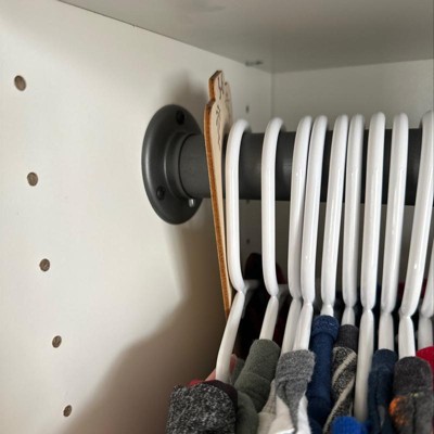 - Closet rod bar connects with custom closet kits or walls to add extra hanging space