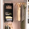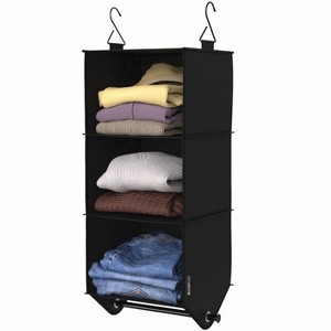Maximize your closet storage with ClosetMaid's 3-Cube Hanging Storage Organizer! With its sleek charcoal black finish, this durable organizer not only keeps you organized but also enhances your closet's style. Featuring convenient hanger attachments, it effortlessly hangs on any standard closet rod. The 3 open shelf compartments provide ample space for folded clothes, hats, shoes, and more, while the attached hang rod offers easy access to hanging items, creating a useful double-hang configuration in your closet. Say goodbye to clutter and hello to extra space in your closet with ease!
