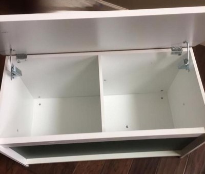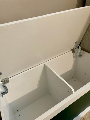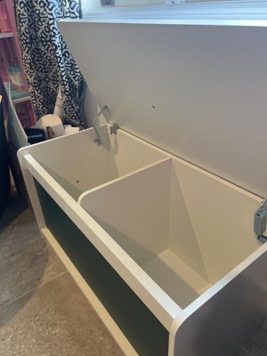 Really nice and sturdy storage for my kids. It was relatively easy to put together. There is limited space with the divider in the middle making two separate inner compartments. Pretty easy to clean. White definitely shows everything.
