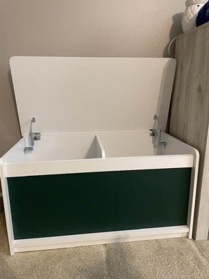 I have been wanting to get a new chest for my little ones toys and this one by ClosetMaid was the perfect choice. The chest was super easy to assemble and only took me about 15 minutes. All needed hardware was included. The directions were simple to follow. I was pleasantly surprised how much I could fit in this toy chest, it offers plenty of room. The chest has two separate compartments which is great for keeping things organized. The stay hinges on the lid prevent the lid from being able to be slammed which is very useful and helps prevent fingers from getting pinched. The chalkboard on the front is a great feature. My little one loves to draw pictures on it. The chalkboard surface is easy to clean. If you are looking for a high quality toy chest, I highly recommend this one by ClosetMaid.