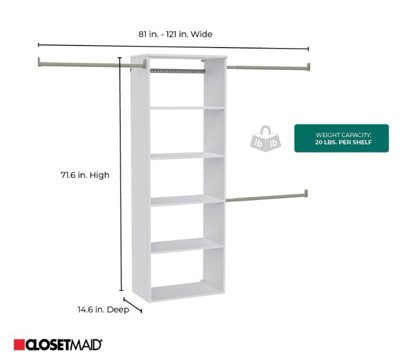 ClosetMaid SuiteSymphony 81 to 121-inch W Hanging Tower Closet Organizer - ClosetMaid