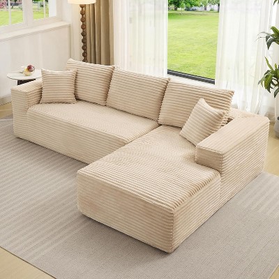 Cloud Boneless L-Shape Couch 108" Modern Sectional Comfy No Assembly Required Sleeper Modular Sofa with Corduroy Fabric Deep Seat Loveseat + Chaise Lounge Chair for Living Room