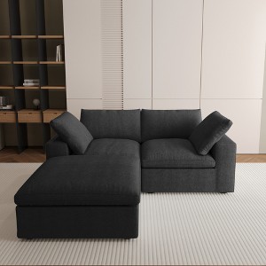The Skycloud sofa is designed to provide "cloud-like comfort." Its filling combines sponge, cotton, and down in the perfect ratio, making it soft yet resilient, which ensures comfort without sagging. The Skycloud sofa also has a modular design: you can freely combine the seats, arrange or remove the arm cushions, and choose from three modules: corner, armless, and ottoman. These features offer endless possibilities for arrangement. The Skycloud sofa is designed to provide "cloud-like comfort." Its filling combines sponge, cotton, and down in the perfect ratio. Thanks to this filling, the Skycloud sofa is soft yet resilient. In addition, the Skycloud sofa is highly modular: you can freely combine the seats, and arrange or remove the arm cushions. Besides, you can choose from three modules: corner, armless, and ottoman. These features offer endless possibilities for arrangement. BY other word: Elevate your living space with this expansive this cloud sofa, designed for ultimate comfort and versatility. The sofa features a sturdy solid wood frame, ensuring durability and long-lasting support. Upholstered in premium hemp-blend fabric, it offers a dense yet soft texture, combining wear resistance, moisture resistance, and a static-free experience. The feather-filled cushions provide a plush, cloud-like seating experience, while the modular design allows you to customize the layout to suit your space. The included convertible ottoman adds extra functionality, perfect for lounging or additional seating. For added convenience, the removable and washable covers make maintenance a breeze. With its generous seating width and depth, this sofa offers ample space to stretch out and relax, making it the perfect centerpiece for your home. Upgrade your comfort with this stylish and practical sectional sofa today!