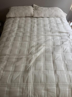 [This review was collected as part of a promotion.] I ordered the Levtex Home Cloud Waffle Quilt Set in the undyed cream color (Full/Queen size), and overall, I really love it. The color is a beautiful, neutral off-white that fits perfectly with a modern, minimal aesthetic. The waffle texture gives it just enough visual interest without being overwhelming. You can also flip the quilt and used the other side. Comfort-wise, it’s incredibly soft and lightweight — ideal for spring and summer. It’s not super thick, so if you run cold or are using it in fall or winter, you’ll likely want to layer it with another blanket. That said, the comfort and breathability are a big plus. There’s also some structure to it because it’s quilted too. The quality feels very high — the stitching is neat, the fabric is durable, and it washes well without losing its softness. While it is on the pricier side for a quilt set, I do think it’s worth it for the overall comfort, feel, and design. Just one thing to note: the sizing of the quilted blanket runs large if you’re putting it on a full-sized bed. It’s clearly cut more for a queen, so expect it to hang over the sides quite a bit. Not a dealbreaker for me, but something to keep in mind depending on your bed setup. The shams fits perfect on a regular sized pillow too.