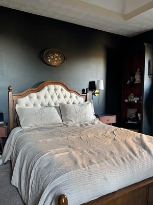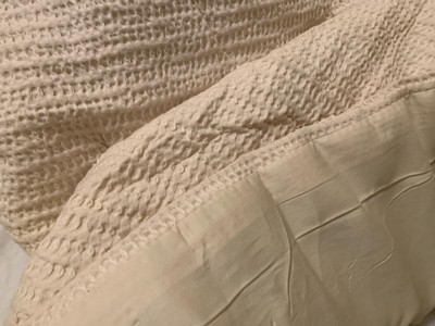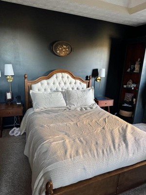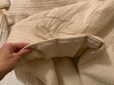 [This review was collected as part of a promotion.] This comforter is the stuff of luxury! I swear I feel like I’m on a nice, crisp, clean hotel bed. It just envelopes you in comfort. First of all, it’s gorgeous and just such a nice cream color. The waffle pattern is subtle, yet just enough to show an inviting texture. The comforter itself feels like quality, as it’s nice and heavy. However, it is actually very breathable. The comforter I was using before had me waking up in a sweat, and it was much thinner than this. It’s almost cooling when you need it, and warming if you don’t. It washed up in my home washer just fine, but I am able to remove my agitator to fit it. There was no fading or pilling at all. Although I wouldn’t expect it to fade much at this lighter color. The shams just add to the gorgeous texture of my bed. My favorite part of the day is cozying up under the comforter at night. I would 1000% recommend this!