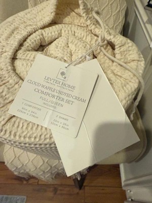 - LEVTEX CLOUD WAFFLE : The Cloud Waffle comforter collection is a cuddly waffle pattern offered in different colors . The set consists of a comforter and matching pillow case.