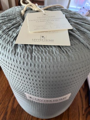 [This review was collected as part of a promotion.] I received this item free of charge in exchange for my honest review. The Levtex Home Cloud Waffle Comforter Set has everything I need to be comfortable in bed. Softness, durability, warmth (but not too warm), weight, and ease of use aka it will easily move to make the bed in the morning. I love the color, the waffle pattern, and the performance. I would highly recommend this product.