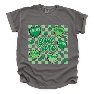 Product Name: Clovers Checkered Distressed - Women's Garment Dyed Long Sleeve Graphic T-Shirt