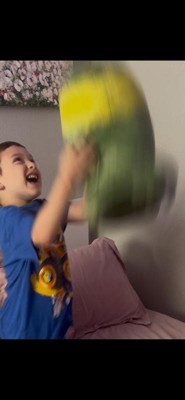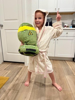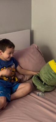 [This review was collected as part of a promotion.] This plushy is super soft and super squishy. He pretends it’s a bomb and throws it down the stairs yelling “BOOM” all the time. While it is very cuddly, it is a little large for in the bed snuggling.