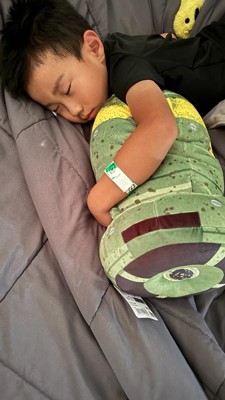 [This review was collected as part of a promotion.] Super cute and large item for the price. My son sleeps with it because it’s so comfortable and it came in a small package and it’s super durable. My kids throw it around.