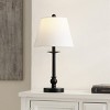 Illuminate your space with the sleek and modern CLYSA table lamp. This 21 inch black iron lamp, paired with an elegant cotton shade, adds a touch of style to any room. The sturdy iron base offers a classic yet contemporary look that complements any decor. CLYSA provides the right amount of light for your late-night reading or to create a cozy atmosphere. Its simple yet sophisticated design makes it a versatile piece, easily fitting into both traditional and modern settings. Whether placed on a bedside table or a living room shelf, this lamp is designed to meet your lighting needs. Discover how CLYSA can transform your space into a haven of comfort and style.