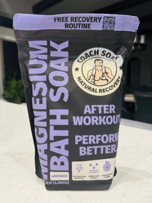 [This review was collected as part of a promotion.] I have always loved epsom salts, and was excited to try Coach Soak in Calming Lavender. After a long day, I tried a normal bath and another time I soaked my feet in Coach Soak. In the bath, the scent was amazing and it did seem like the magnesium improved the effect of the salts. The package is 3 pounds. I took off one star because it is a little expensive.