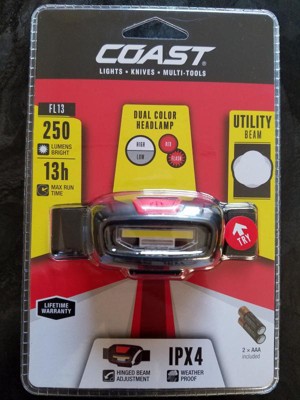 COAST FL13 380 Lumen LED Headlamp: Impact-Resistant, Water-Resistant, Battery Powered, Red Light, High & Low Modes