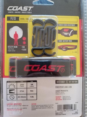 Go bright, go easy. Designed to meet everyday hands-free lighting needs, the FL13 headlamp combines the packability of its small, lightweight format with an all-purpose optic. Shine the fixed utility beam—with the flawless quality all COAST beams are known for—at up to 380 lumens, and use the intuitive switch to select from four light modes: low, high, red, or red flashing. This go-anywhere companion features COAST Dual Power technology so that it can operate either on the included alkaline batteries or be upgraded to COAST ZITHION-X rechargeable batteries (sold separately). Built to IP54 specifications, the FL13 is water-resistant and dust-resistant.