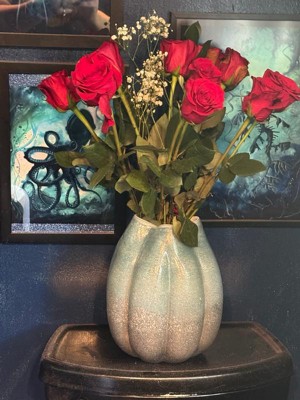 [This review was collected as part of a promotion.] This vase is really more beautiful in person. Very nice quality. The blue changes color as it goes up the vase. The ridges make it easy to position flowers in the grooves. High quality beautiful vase