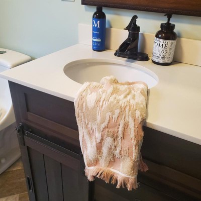 [This review was collected as part of a promotion.] This hand towel is 16 x 27 inches in size. What I love most about this towel is the cute fringe detail on the ends. I recently redid my bathroom and went with a more neutral paint color. This hand towel is the perfect addition of color and can easily be swapped out as my mods change. It’s very soft and seems like a decent quality hand towel. Gotta love target for keeping up with style trends! I received an incentive to write this review.