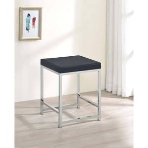Rest comfortably in this chic contemporary vanity stool as you apply makeup or prepare for the day. Featuring a square shape design and a densely padded, foam-filled cushion , this modern stool provides a spacious for long-lasting comfort. The seat cushion is also wrapped entirely in a smooth grey tone leatherette. With a backless design, you can slide it beneath a vanity table when not in use. The base offers all the support you need with a heavy gauge steel frame with a gleaming electroplated, polished chrome finish.