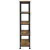 Keep important books handy with this eye-catching bookcase. Styled in an industrial motif, it blends antique nutmeg finish shelving with steel supports finished in black. Find plenty of space to store books and display accent decor. Place in a living room or family room as casual companion furniture. Four shelves and a top surface render this tall bookcase a perfect accent for an office or bedroom.
