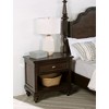 This nightstand combines classic design with modern functionality, making it a perfect addition to any traditional bedroom. The dark oak finish enhances the intricate wood grain, while the single drawer offers convenient storage for bedside essentials. An open cubby below provides additional space for decorative items or books, while the integrated cable management system keeps your electronics organized. Gunmetal hardware adds a touch of contemporary flair to the vintage design. Built with solid pine and oak veneers, this nightstand is both functional and stylish.