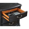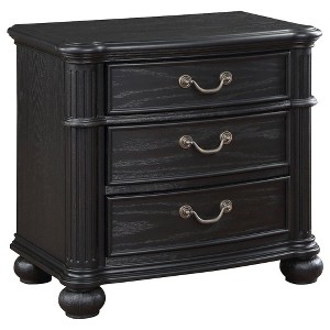 Discover the perfect blend of functionality and elegance with this nightstand, featuring three spacious drawers to keep your essentials organized. The top drawer, lined with soft felt, provides a gentle nest for your delicate items, while ingeniously designed grooves at the back allow for discreet charging cable access, keeping your devices powered and within reach. This nightstand, with its black finish and timeless hardware, is not only a storage solution but a sophisticated addition to your bedroom sanctuary.