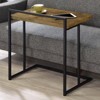 - Industrial snack table with an antique nutmeg finish and black legs