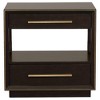 - Two-drawer nightstand in a rich smoke peppercorn finish for a modern bedroom